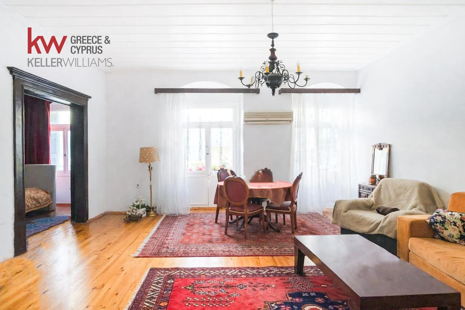 This traditional apartment for sale in Nafplio Old Town is located just steps from Syntagma Square, within a distinguished listed building in the historic centre of the city. The property measures 120.65 sq.m. and forms part of an architecturally significant residence where original character has been carefully preserved.