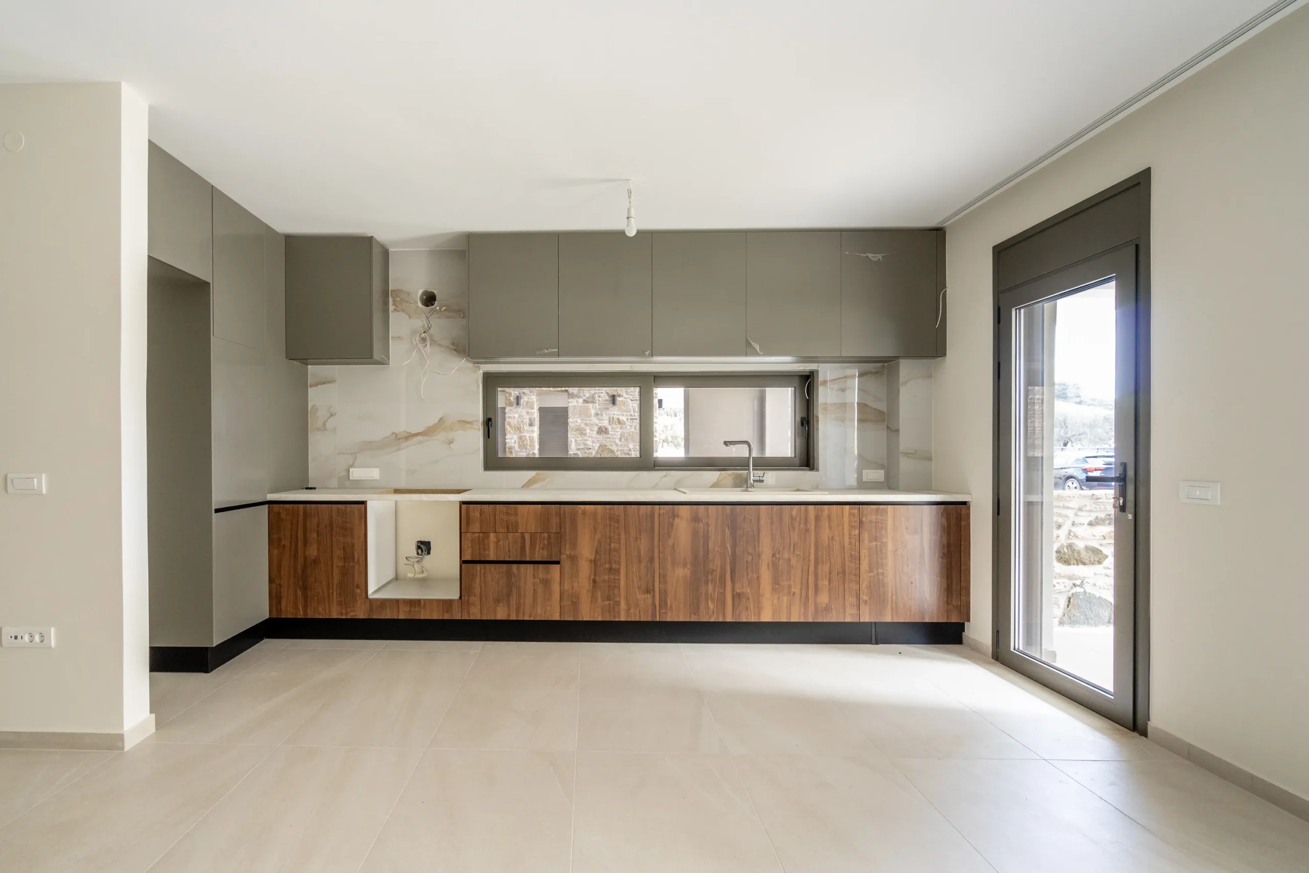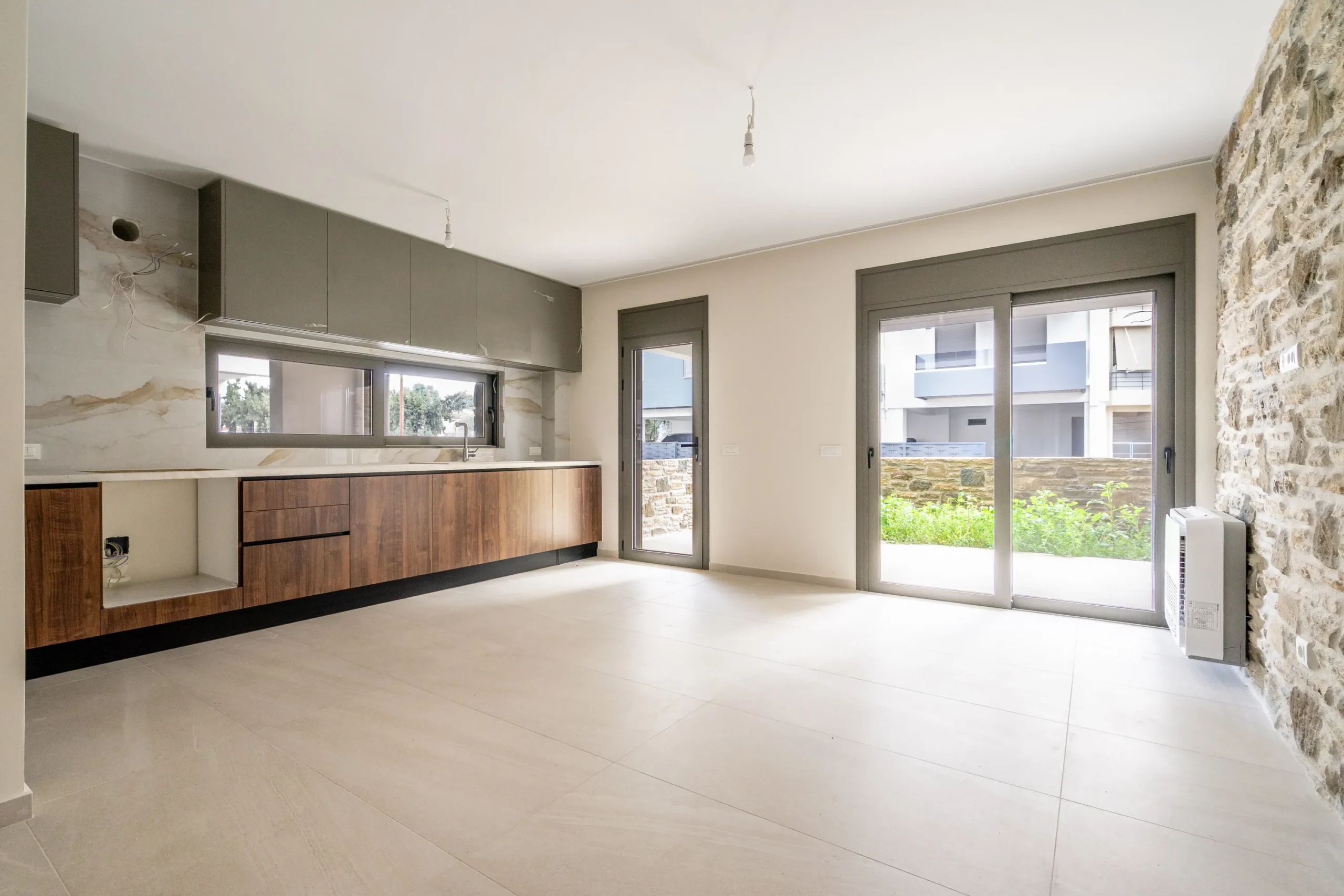 The layout is generous and functional. The open plan living and kitchen area is notably spacious, creating a strong sense of openness and flow. Large openings connect the interior directly to a private front terrace, naturally extending the living space outdoors. At the rear, the bedrooms share a second terrace, allowing for cross ventilation and reinforcing the indoor outdoor connection that defines the home’s character.