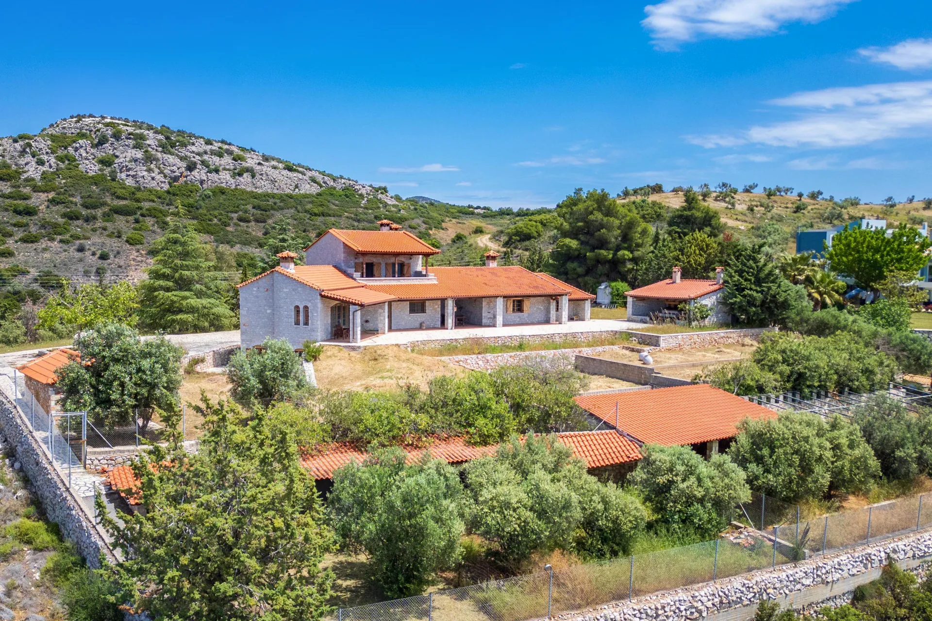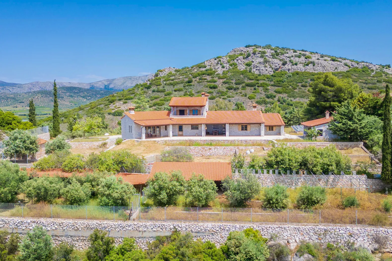 Set on the gentle hills surrounding the historic town, this Countryside villa near Nafplio offers privacy, space, and uninterrupted views across the Argolic landscape. Built on a 4,132 sq.m plot, the property sits in a peaceful natural setting defined by olive groves, Mediterranean vegetation, and the quiet rhythm of the countryside, while remaining only a short drive from the centre of Nafplio.