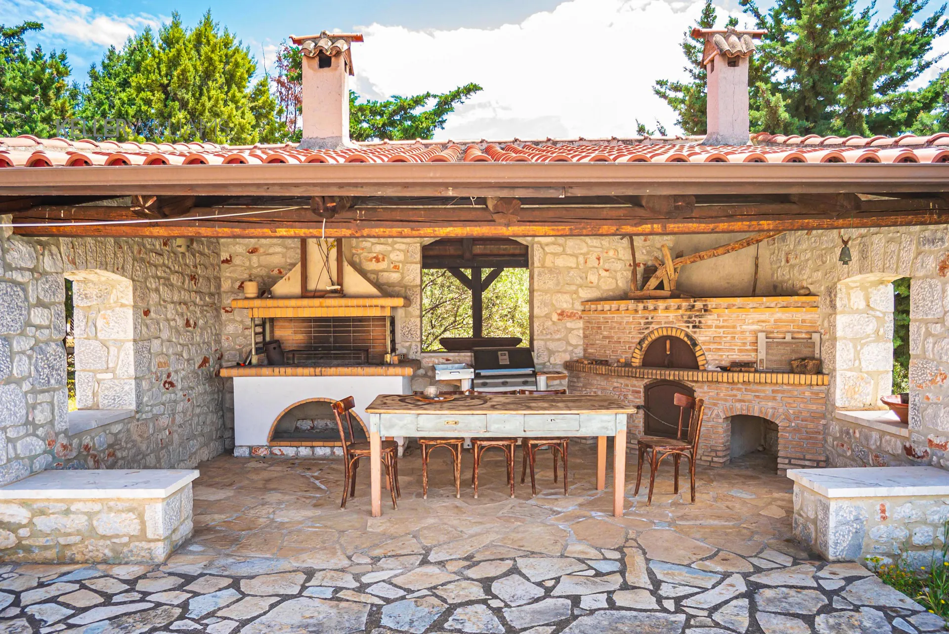 Outdoor spaces are an important part of this Countryside villa near Nafplio, with the large garden providing room to enjoy the natural surroundings in privacy. A dedicated BBQ area creates an inviting space for outdoor dining, while a jacuzzi offers a quiet place to relax. The property also includes a prepared excavation for a swimming pool, allowing future owners to easily add one if desired.