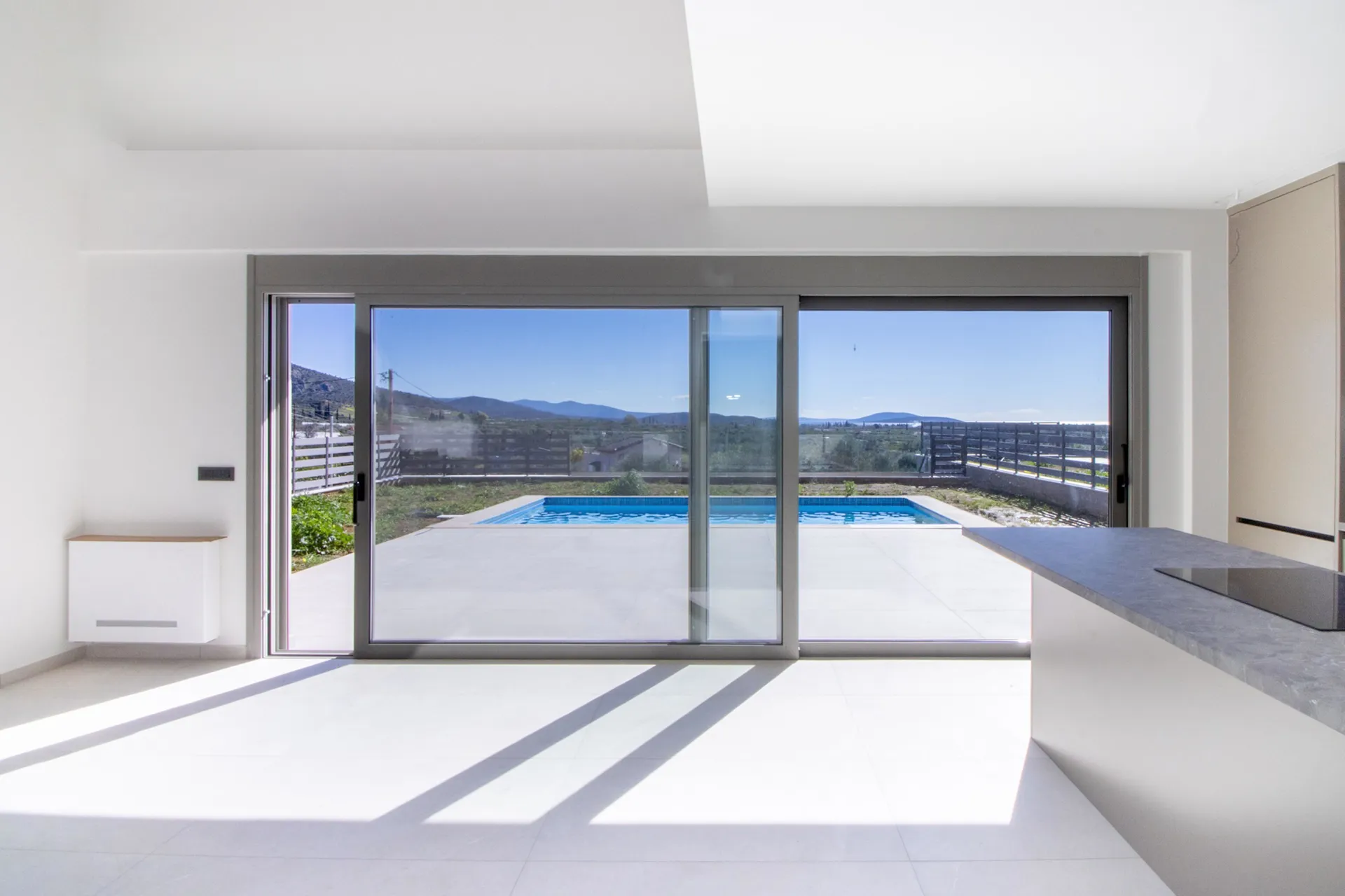 This brand-new, 120 sq.m. house with pool for rent in Nafplio (Aria suburb) combines modern design with comfort and style. Spread over two levels, it features three spacious bedrooms, a bright open-plan living and dining area, and a fully equipped kitchen, all finished with high-quality materials and energy-efficient frames.