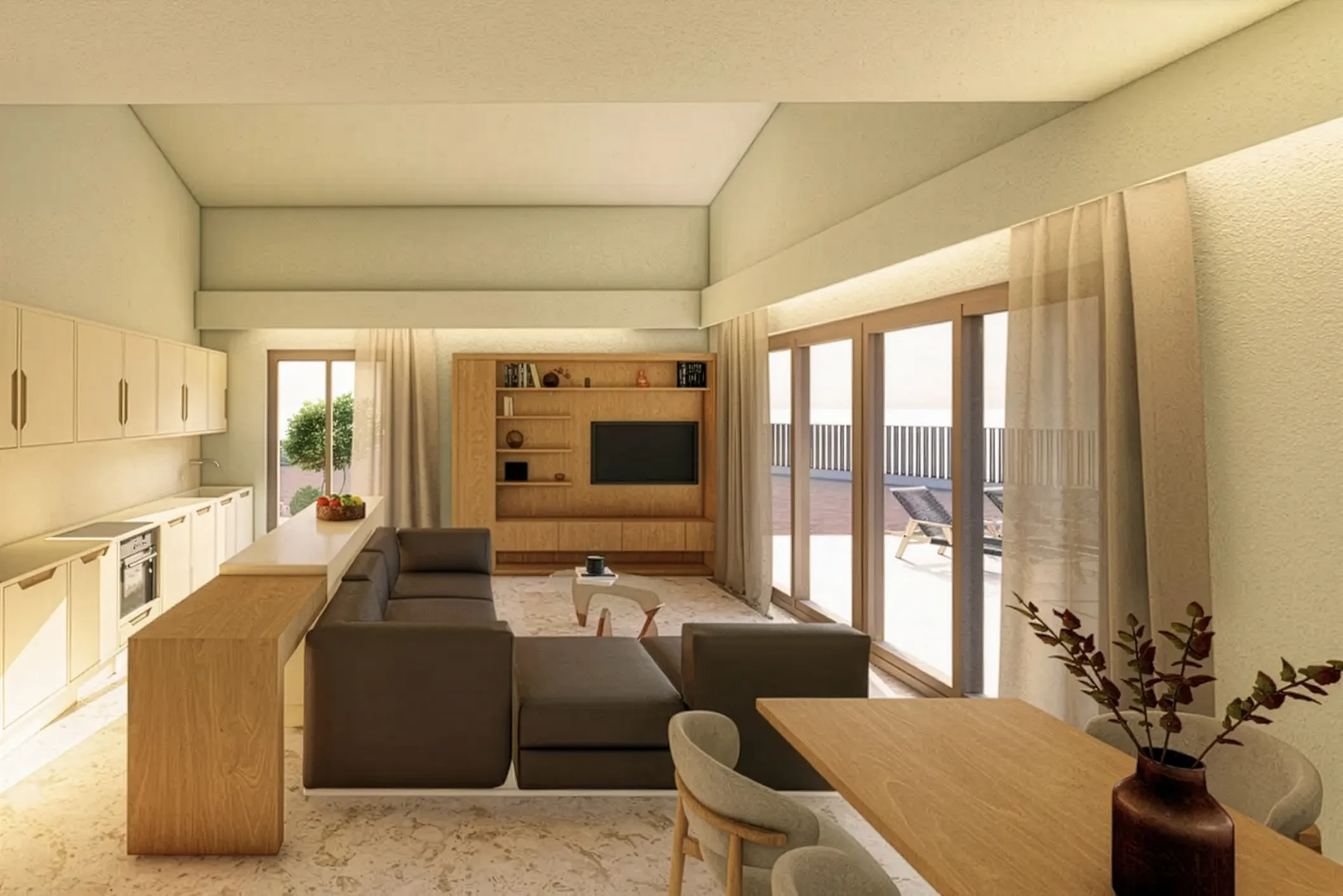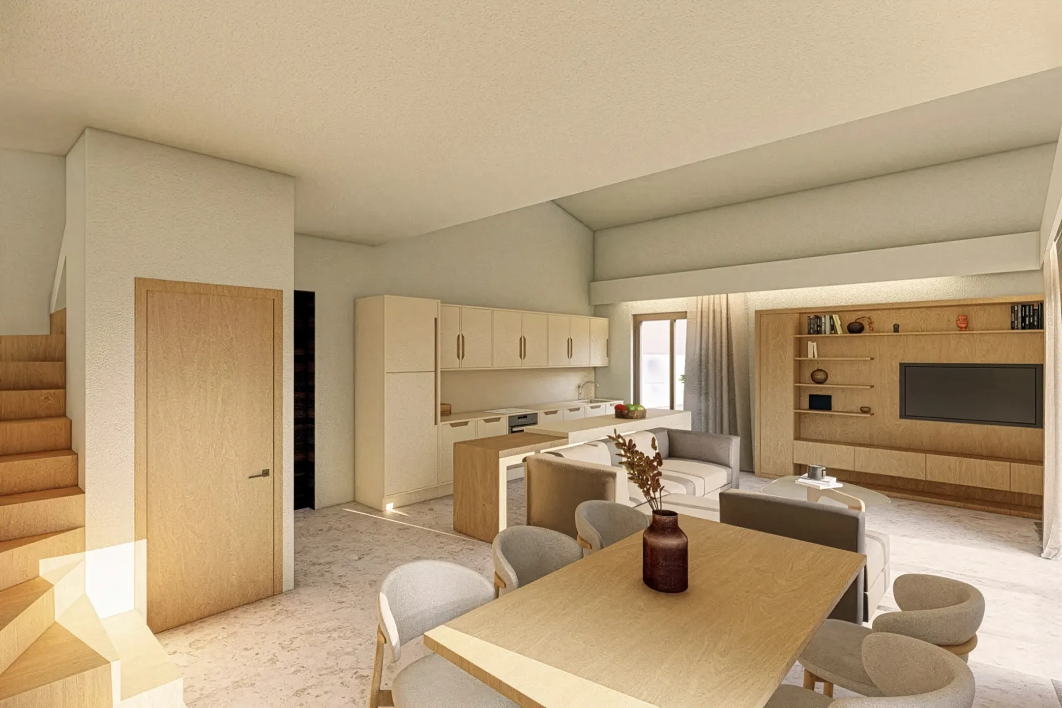 With a total living area of 145.26 square metres and scheduled for completion in 2026, this newly built Spacious Villa Near Nafplio has been thoughtfully designed to balance elegance with everyday comfort. At the heart of the home is a bright open-plan living and kitchen area where large openings allow natural light to flow throughout the interior, creating an inviting atmosphere that changes beautifully throughout the day.