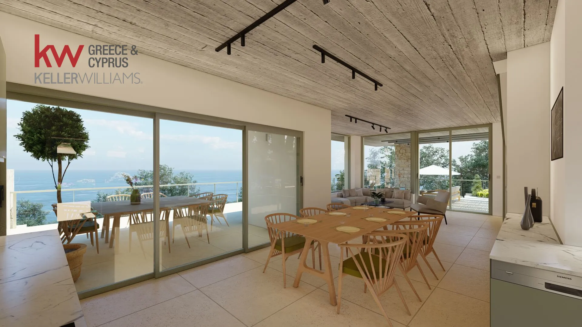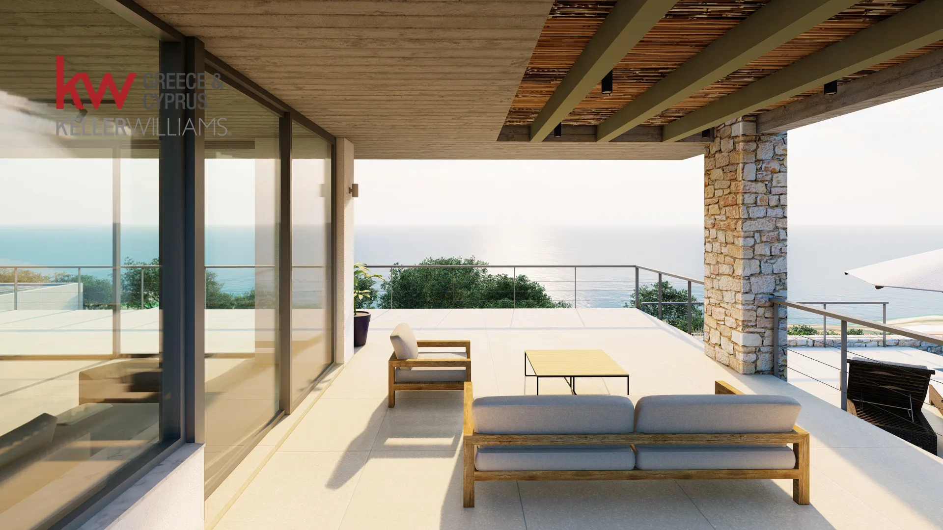 This seafront villa for sale in Xiropigados is set on a rare 1,000 sq.m. plot directly above the Argolic Gulf, offering uninterrupted sea views and a strong architectural relationship with its coastal setting. Defined by clean lines, natural stone, and large glazed openings, the villa is designed to maximise light, views, and a clear connection between interior and exterior spaces.
